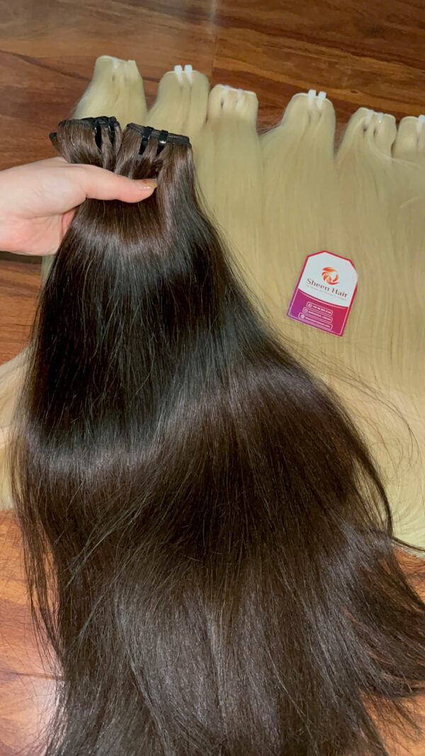 Transform your look today with Sheen Hair Vietnam’s premium 18-inch brown human hair extensions. Experience the luxury and convenience of effortlessly beautiful, voluminous hair.