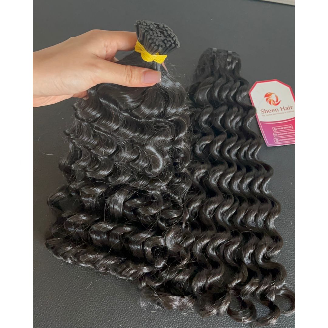 Unleash Your Inner Goddess: Experience the Luxury of I-Tip Curly Black Keratin Extensions from Sheen Hair Vietnam