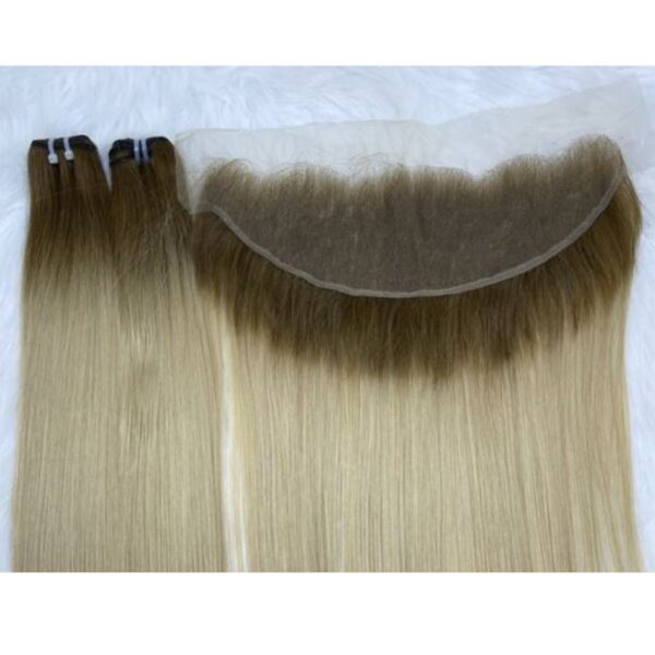 This combo set features ombre blonde hair with a dark root, 22 inches, ready for seamless wig construction.